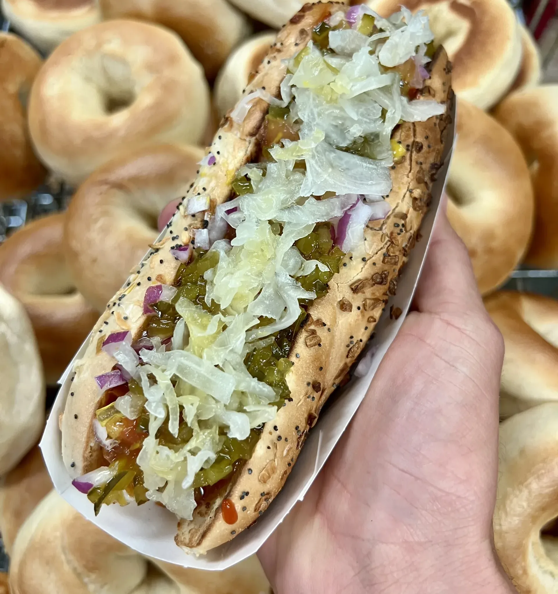 You can purchase a Western Bagel hot dog at any of our stores. Locate your nearest one here! Save time and order ahead on our app! Download here! Start earning bagel rewards today!