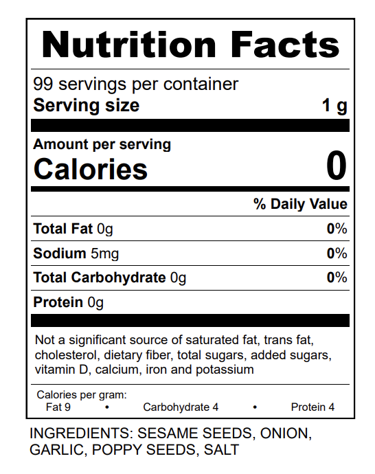 Our everything bagel topping is so tasty you’ll want to put it on, well, everything! This delicious savory mix includes poppy and sesame seeds, dried onion, garlic, and salt. It adds delightful color, crunch, and flavor when sprinkled on top of our bagels. Incorporate it into doughs, and even sprinkle it on your morning eggs or avocado toast – the possibilities are endless.